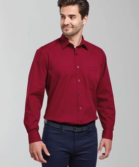 A men's long sleeved classic fit Poplin shirt available in 27 colours from the Premier 'Colours Collection.' This classic work shirt has a stiffened formal cut collar which accommodates a ties perfectly. The left breast pocket and self-fabric buttons down the placket and cuffs makes for a smart and stylish everyday shirt which carries Premier's easy care label.