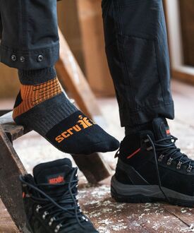Thick, comfortable work socks with cushioned sole, heel and toe for extra comfort. Reinforced heel and toe for added durability. Arch support for hard-working feet.